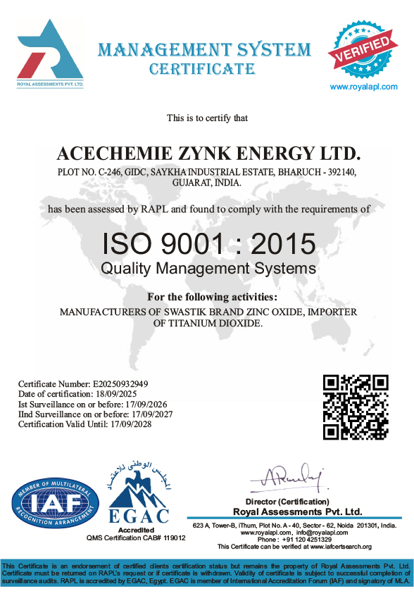 We give foremost priority to quality control during production, as all the raw materials checked on receipt, ensuring they comply with our purchase specifications. We work closely with the whole process cycle of bringing products to its ultimate test to end products, assuring premier quality of products to our esteemed customers. Rather than using furnace oil which is commonacross the industry, we use gas as fuel to fire our furnaces to produce carbon-less and environmental friendly Zinc Oxide.